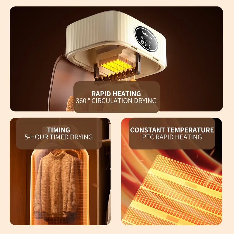 The 600W Folded Electric Clothes Dryer is a versatile and efficient solution for drying clothes, especially for those who are constantly on the move. This smart drying rack is designed to be portable and easy to store, making it ideal for travel or small living spaces. It features a powerful 600W motor that produces warm air, ensuring quick and gentle drying of clothes without causing damage. The machine comes with a timing function, allowing users to set the drying duration as per their convenience. Its foldable design not only makes it compact but also easy to set up and take down. Whether you're at home or on the road, this electric clothes dryer is perfect for keeping your clothes dry, fresh, and ready to wear.